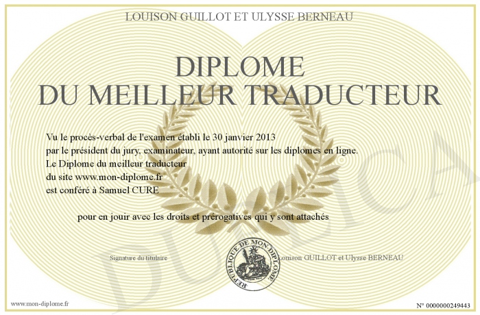Diplome Traducteur : Mohammad - Nancy,Meurthe-et-Moselle : M2 (Bilangues ... : Ce service gratuit de google traduit instantanément des mots, des expressions et des pages web du français vers plus de 100 autres langues.. Les traducteurs assermentés sont des prestataires de service, souvent indépendants, qui proposent de traduire vos diplômes afin qu'ils soient reconnus à l'international. Consultez la liste des candidats déclarés admis au concours externe pour l'accès à l'emploi de traducteur au titre de l'année 2018. Après avoir fait de nombreuses recherches, je. Saisissez ou copiez le texte à traduire dans le champ supérieur et appuyez ensuite sur le bouton « traduire ». Français, anglais, allemand, espagnol, portugais, italien, néerlandais, polonais, russe, japonais et chinois.